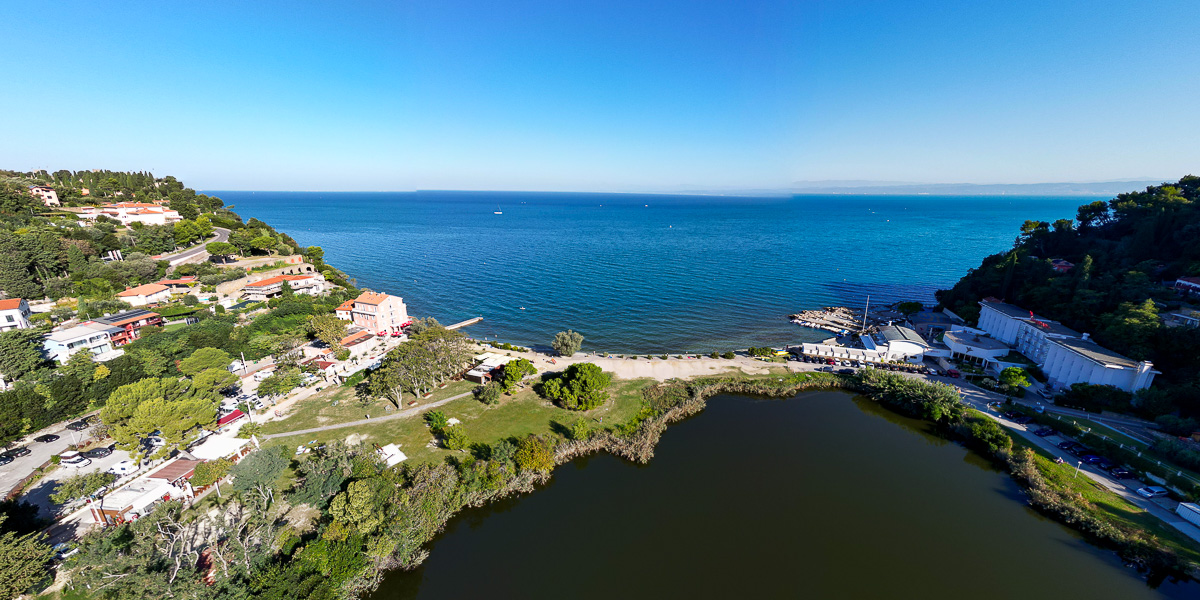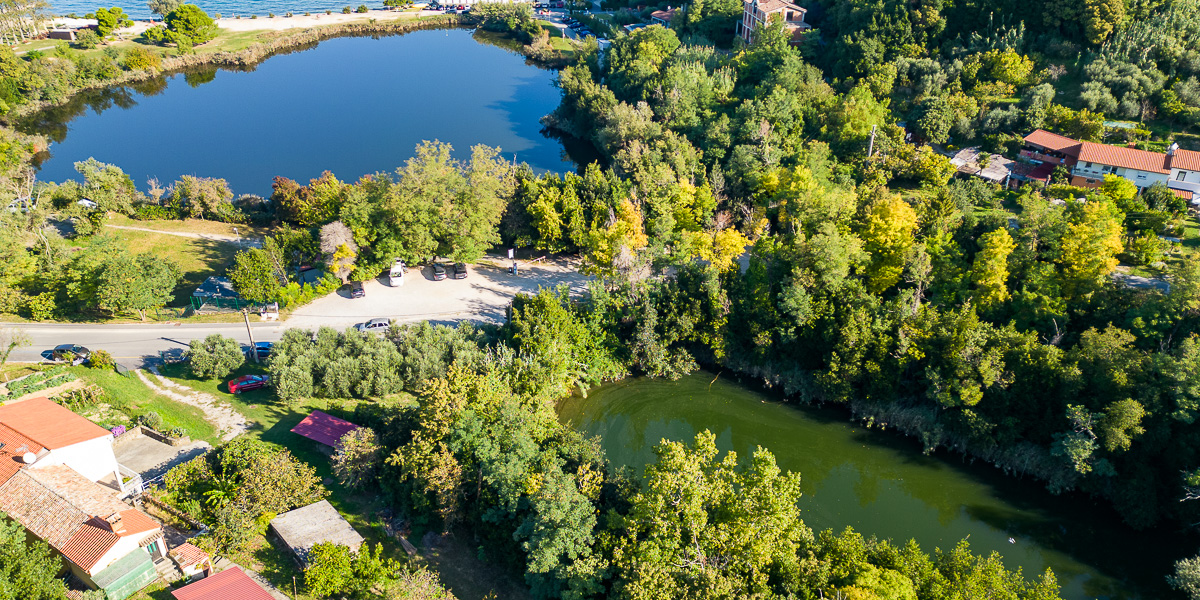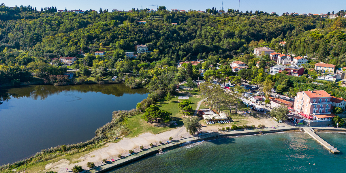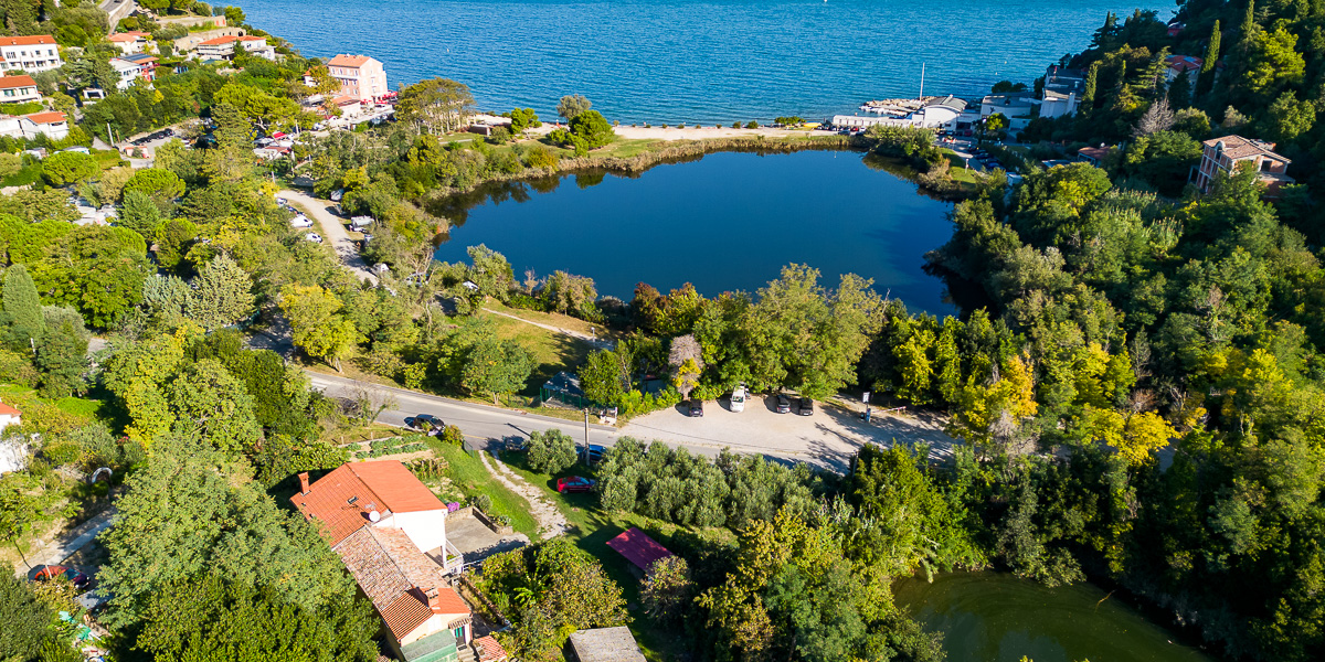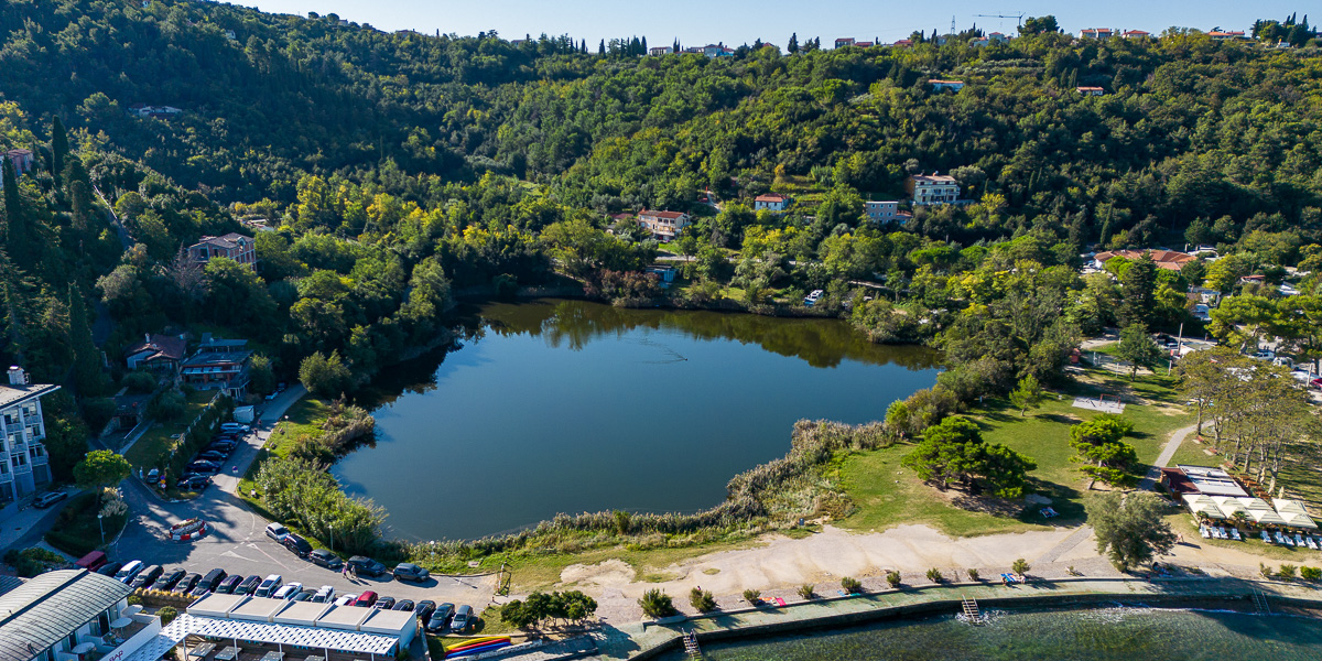 Jezeri, ki ležita čisto blizu obale sta obrasli s trstičjem. Obe jezeri imata skupno površino okoli 2 ha. Nastali sta kot posledica odkopa gline za potrebe nekdanje opekarne. Malo jezero, ki je sladkovodno, se nahaja na nadmorski višini okoli 10 mnm pod pobočji, globoko je do 6,5 m.