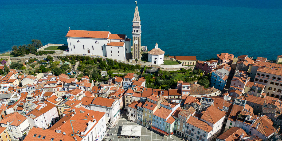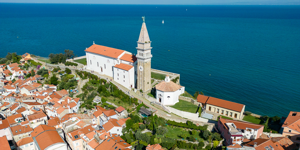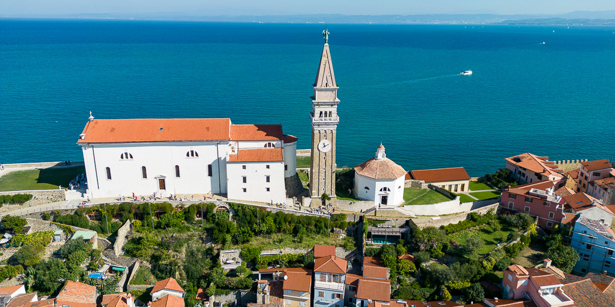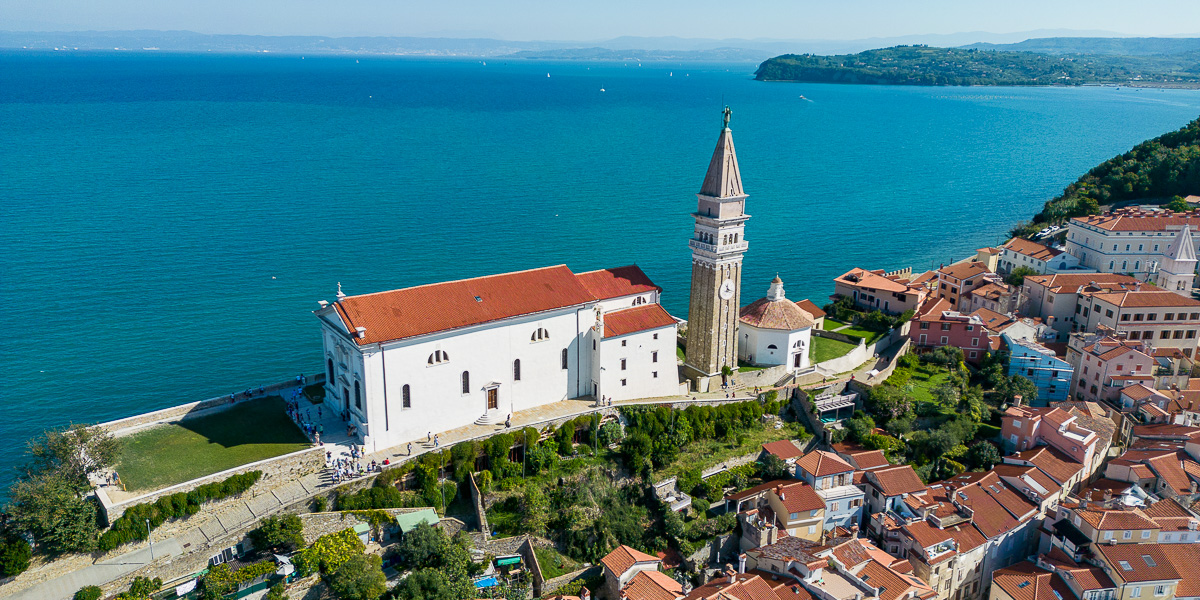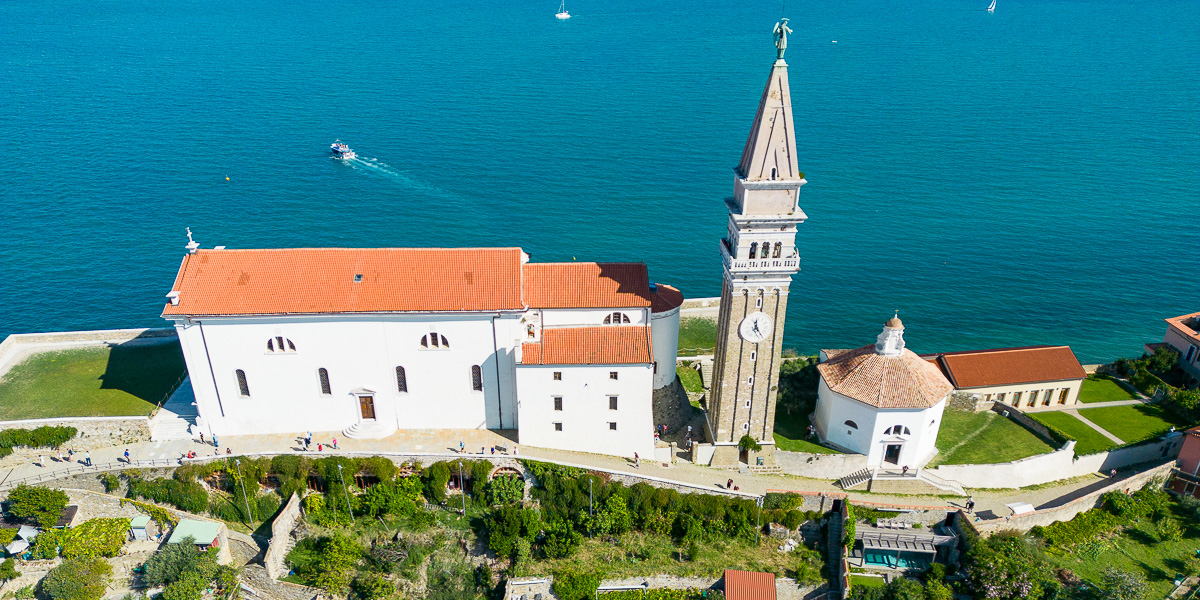 Današnja župnijska cerkev sv. Jurija je zgrajena v beneško-renesančnem slogu. Arheološke raziskave so potrdile ostanke antične gradnje ter obstoj prve krščanske cerkve iz časov med 6. in 7. stoletjem. Zgodovinski viri potrjujejo obstoj župnije v 10. stoletju, kar je razvidno iz fragmentov stare cerkve v lapidariju, ki datirajo iz časa med 10. in 12. stoletjem. Staro cerkveno baziliko oglejskega tipa je nadomestila triladijska gotska cerkev, posvečena leta 1344. Današnjo podobo je cerkev dobila po dolgi obnovi med 1595 in 1637, s ponovno posvetitvijo 25. aprila 1637.